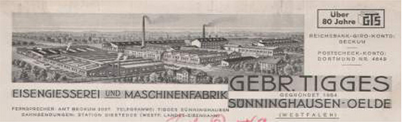 An diesem Tag wird die Firma GEBR. TIGGES gegründet. Johann Bernhard Tigges übergibt das Unternehmen am Gründungstag seinen beiden Söhnen Gerhard und Eduard Tigges. Beide sind selbstständige Handwerksmeister; beide erhielten ihre Fachausbildung in Münster und in der Maschinenbauschule Warstein.